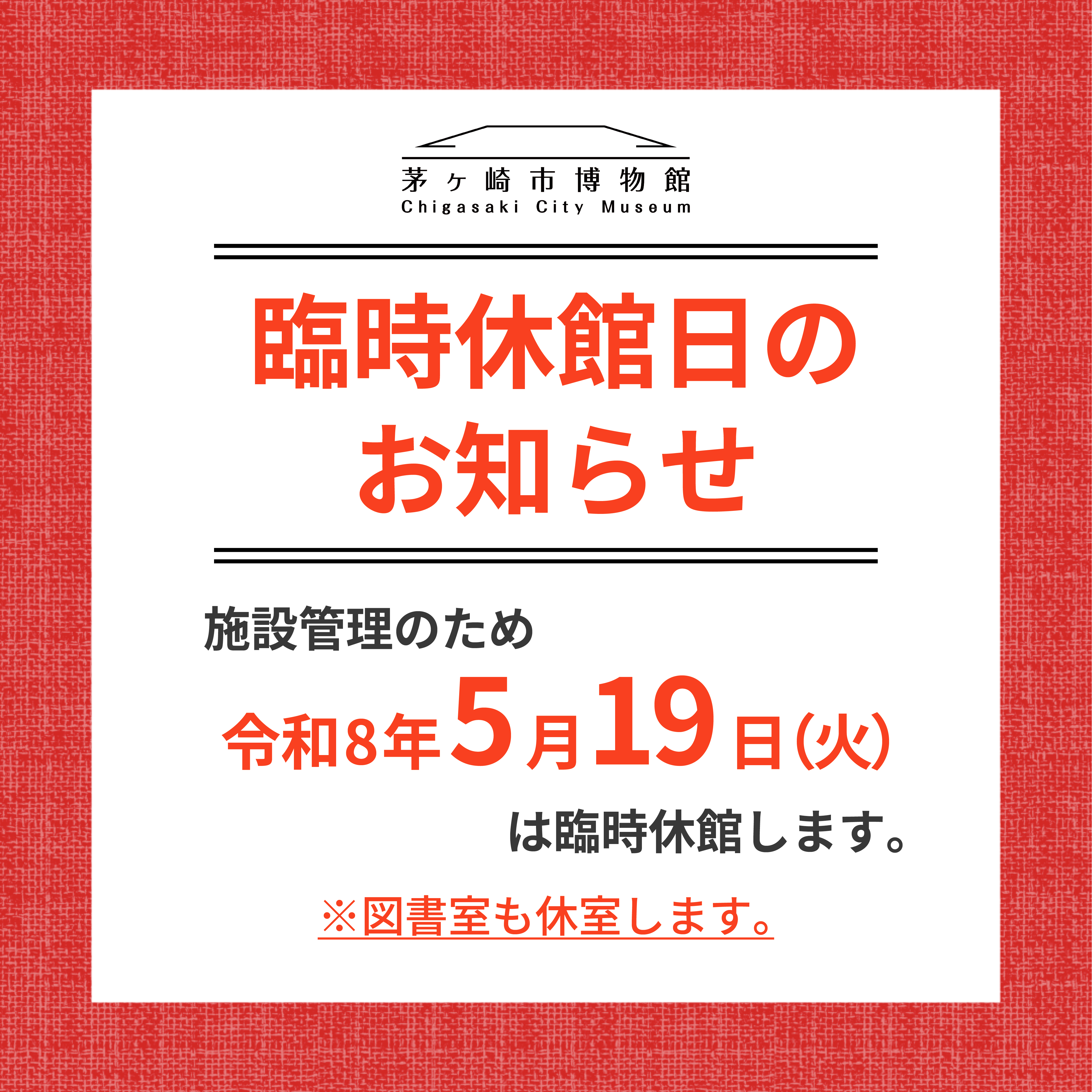 【重要】臨時休館日のお知らせ《令和8年5月19日(火)》