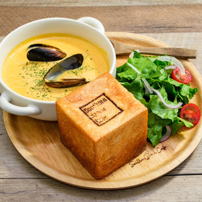 This cafe is located right in front of Southern Beach, with the concept of a free and open atmosphere of an exciting seaside setting where time passes by slowly in a relaxing space. Enjoy delicious meals unique to Chigasaki, such as original hamburgers and shirasu (whitebait) pasta.